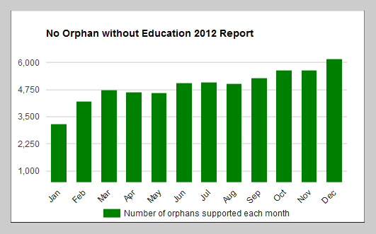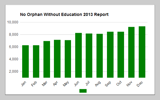 The following graph indicates the number of orphans supported each month by Hidaya in 2014.
