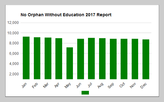 The following graph indicates the number of orphans supported each month by Hidaya in 2017.