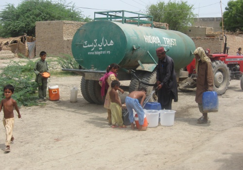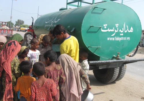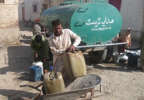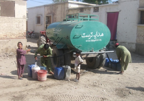Many cities with dense populations lack adequate fresh water because municipalities which should be supplying them are failing due to decaying infrastructure and rising population. For such instances, Hidaya has started delivering water to the masses free-of-charge via water tankers which are filled with fresh water from our own wells. Currently, we have 4 water tankers in operation making deliveries throughout small cities 5 times a day, 6 days a week so that people in that locality will not have to fight with each other over scarce water sources. It costs just $15 per round for a 1,200 gallon tanker to give water to hundreds of people.