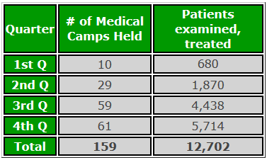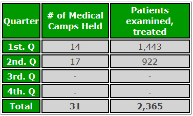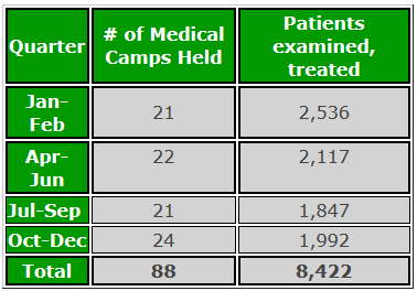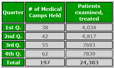 Medical Camps Sponsor health camps in remote locations Donate Now 2016 Report 2015 Report 2014 Report 2013 Report 2012 Report 2011 Report