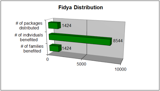In 2009,Hidaya distributed 109,880 meals as part of its Fidya project, as per the request of its donors