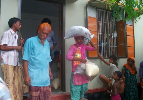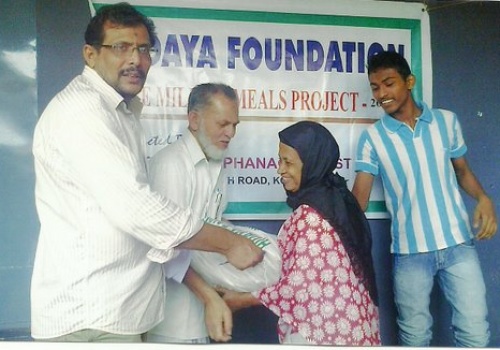Dry ration packages are given to poor families as well as survivors of disasters. Though the nature of food supplies vary based on the regions of distribution, a typical, dry ration package consists of rice, wheat flour, lentils, dates, sugar, cooking oil, and soap. Each package is enough to feed a family of about 5 or 6 for a month. Due to buying in bulk, it costs only 50 cents per meal, $50 for 100 meals, or $500 for 1,000 meals.