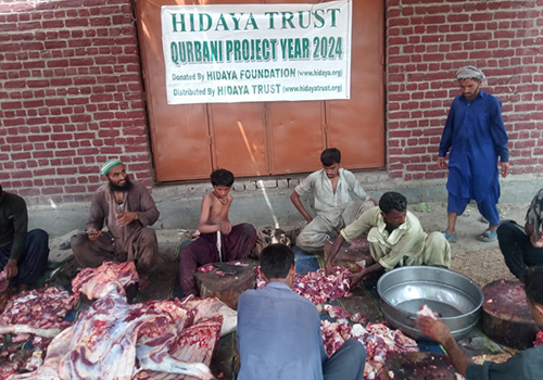 With the Blessings of Allah, this year, Hidaya Foundation arranged 5,563 shares of Qurbani on behalf of our donors (4,627 ox/buffalo shares or 661 ox/buffalo, and 936 goats/sheep). Additionally we arranged for 65 ox/buffalo to be sacrificed as Sadaqah (455 shares) so that more poor may benefit during Eid celebrations, especially those affected by floods in Pakistan.