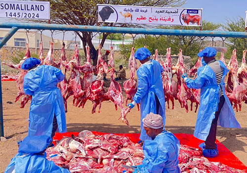 Meat was distributed among some of the poorest people in the world in the following countries: Pakistan, Bangladesh, Myanmar/Burma, Nepal, Cameroon, Guinea, Sierra Leone, Senegal, Gambia, Togo, Kenya, Somalia, Somaliland, Ethiopia, Uganda, Zimbabwe, Tanzania, Sudan, and Yemen.