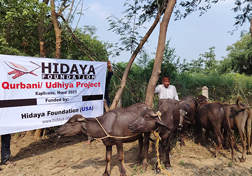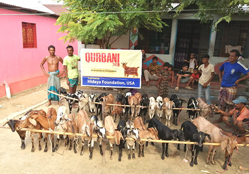 With the Blessings of Allah, this year, Hidaya Foundation arranged 7,395 shares of Qurbani/Udhiya on behalf of our donors (5,509 ox/buffalo shares or 787 ox/buffalo, and 1,886 goats/sheep).