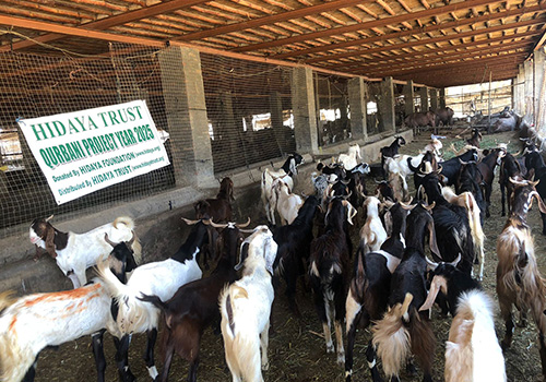 With the Blessings of Allah, this year, Hidaya Foundation arranged 5,170 shares of Qurbani on behalf of our donors (4,102 ox/buffalo shares or 586 ox/buffalo, and 1068 goats/sheep).